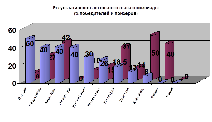 Активность учителей основной и старшей школы осталась такой же : в конкурсах участвуют 1-2 человека в год, что при современных требованиях к квалификации, профессионализму и продуктивности деятельности резко суживает возможности аттестации на категорию.
