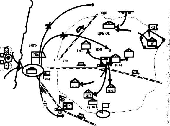 1. Схема эвакуации раненых и больных из госпитальной базы фронта в ТГМЗ.