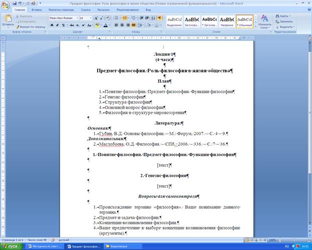 Пример организации структуры и оформления лекции приведён на рисунке 1.