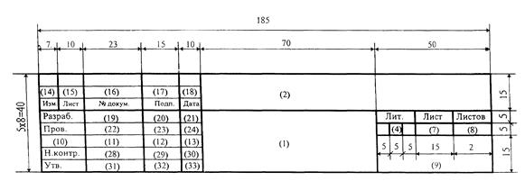 Основные надписи, дополнительные графы к ним и рамки выполняют основными (сплошными толстыми) и сплошными тонкими линиями. В графах основной надписи и дополнительных графах приводят следующие данные: