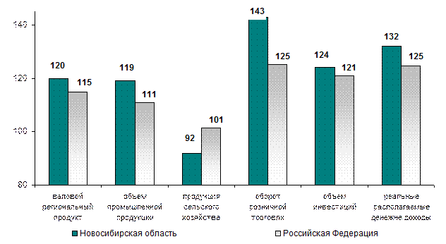Темп роста основных экономических показателей по Новосибирской области и Российской Федерации