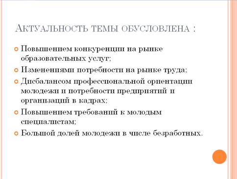 · демонстрация ваших возможностей и способностей организации доклада в соответствии с современными требованиями и с использованием современных информационных технологий;