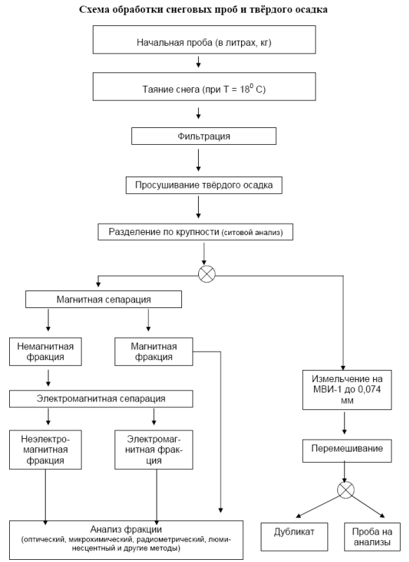 Данная глава содержит самостоятельные исследования. Материалы должны иллюстрироваться схемой отбора проб, таблицами (прил. 2), рисунками, фотографиями и т.д. В приложении приводятся схемы подготовки проб для изучения форм нахождения, в том числе типовая схема для шлихового анализа (прил. 3), для исследования почвенных и снеговых проб (прил. 4).