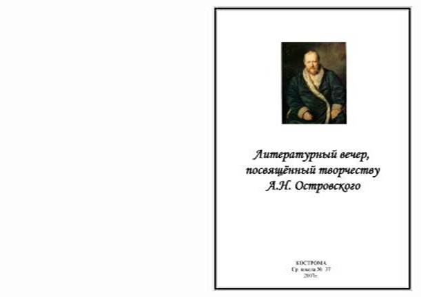 1. Восстановить и показать спектакль по произведениям Островского А.Н. (см.приложение 3 «Сценарий ведения литературного вечера»).