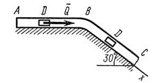Груз D массой m, получив в точке А начальную скорость , движется в изогнутой трубе ABC, расположенной в вертикальной плоскости; участки трубы или оба наклонные, или один горизонтальный, а другой наклонный (рис. Д1.0 — Д1.9, табл. Д1).