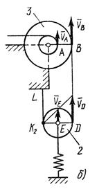 Все входящие сюда скорости надо выразить через искомую . Для этого предварительно заметим, что где A —любая точка обода радиуса шкива 3 и что точка K1