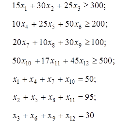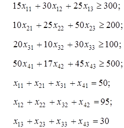 Предполагается также известным требуемый минимальный объем перевозок по каждой линии, а также число судов j