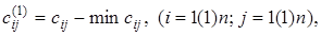 Среди элементов каждого столбца этой таблицы выбираем наименьший и вычтем его из всех элементов этого столбца. Составим таблицу, элементами которой являются разности