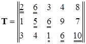 Для нахождения решения с нулевым значением, рассмотрим сначала ту строку (или те строки), которая содержит наименьшее число нулей. Если эта строка содержит только один нуль, то подчеркнем его двойной чертой. Если же рассматриваемая строка содержит два и более нулей, то подчеркнем двойной чертой один из нулей этой строки, а затем вычеркнем нули, которые находятся в той же строке или в том же столбце, что и подчеркнутые двойной чертой нули.