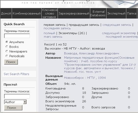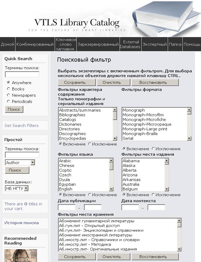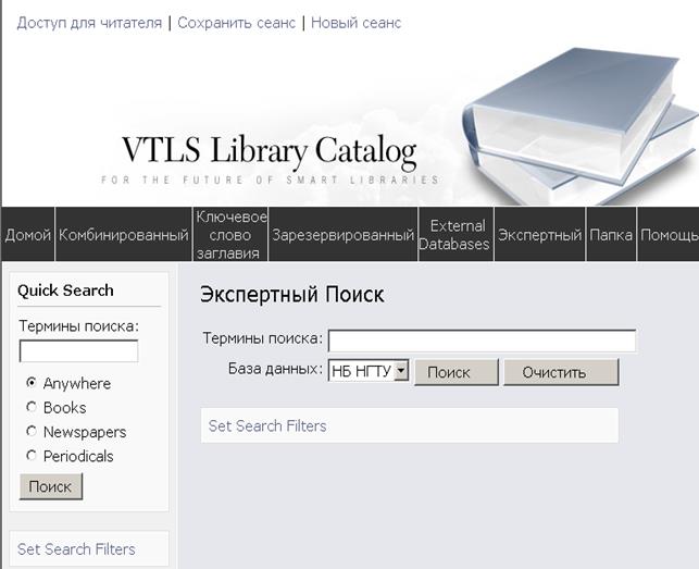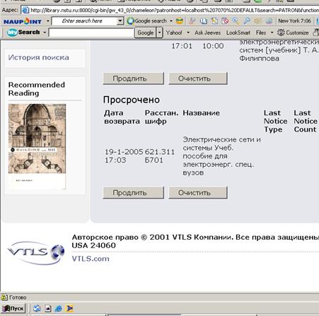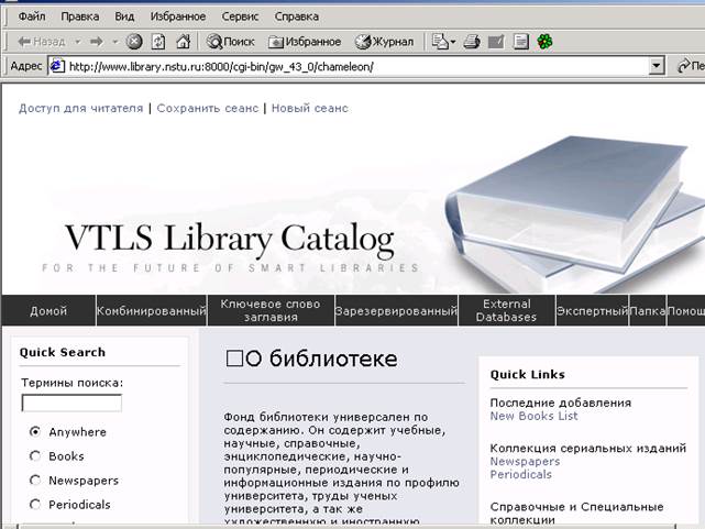 . Система VTLS: возможности для читателя библиотеки университета / Л.И. Волкова // Европейский опыт и перспективы развития сибирских библиотек: материалы IV международной конференции, посвященной итогам работы в Компакт-проекте СР98-20045 / Томский гос. ун-т, Научная библиотека. – Томск, 2001. – С. 77–85.