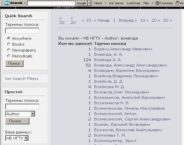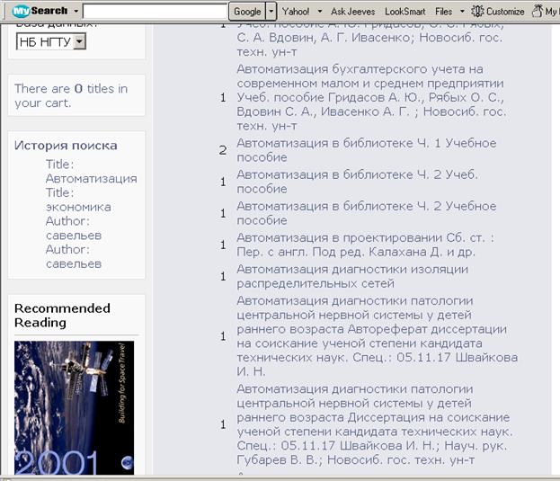 Система сохраняет список поисков, которые вы произвели в электронном каталоге на протяжении сессии.