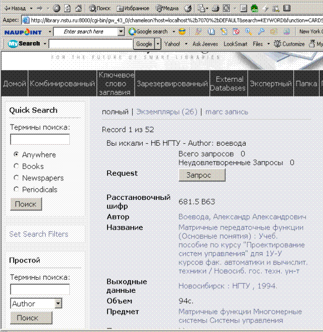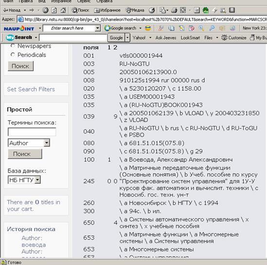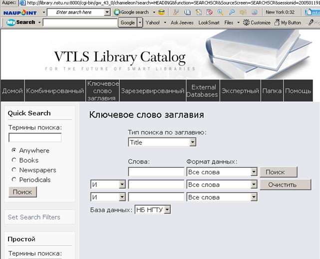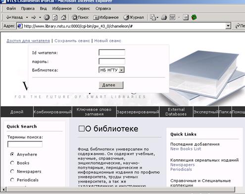 · научить читателя работать с электронным каталогом НБ НГТУ в режиме online-доступа через Chameleon Portal.