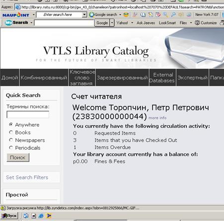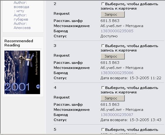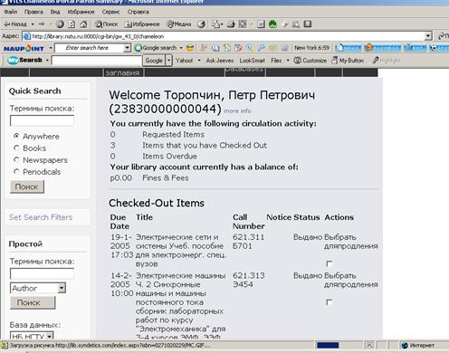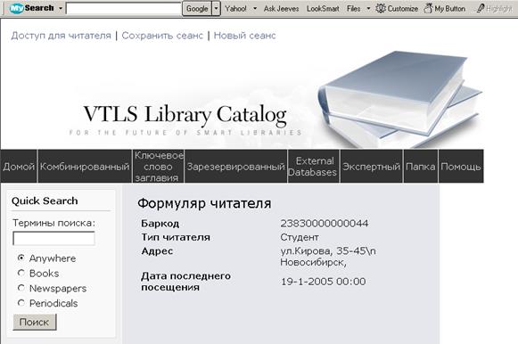 Заполнение поля пароля читателя (который он сообщает при записи сам) дает возможность ему просматривать свой электронный формуляр с любого компьютера, подключенного к Интернет.