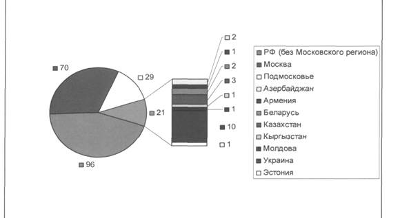 | Рис. 2. Региональный состав студентов первого курса химического факультета МГУ в 2003 году