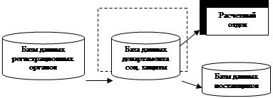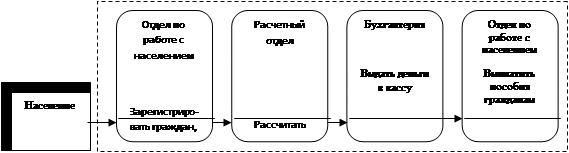 Данные от безработных через приемный отдел поступают в отдел сбора данных, где они классифицируются и учитываются. На основе этой информации бухгалтерия выплачивает пособия по безработице. Отдел сбора данных собирает информацию о существующих вакансиях и предоставляет ее инспекторам приемного отдела.