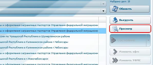 При нажатии на кнопку «Просмотр» в окне «Список Дел» система открывает диалог «Просмотр дела» (меню справа)