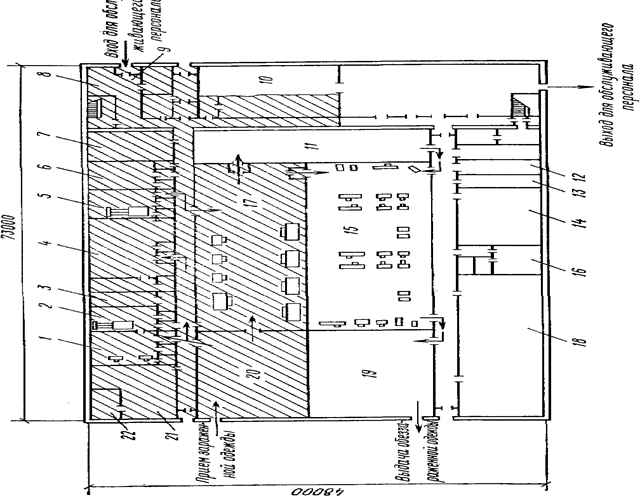 Цех приемки и сортировки зара женного белья и одежды, посты