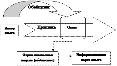 Обобщение опыта – неотъемлемая часть педагогической деятельности, структура профессиональной компетенции каждого педагога, в которую входят осознанные и стандартизированные процессы самооценивания деятельности, выделения сущностных характеристик практики, конструирование и объективация способов педагогической активности.