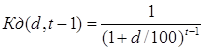1. На премию за риск при расчете дисконтного множителя не влияет показатель степени (t-1), поэтому эта премия влияет на дисконтирование в равной степени для всех интервалов планирования