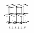 Гранецентрированная решетка куба; каждый атом окружен четырьмя другими, расположенными по тетраэдру. Атомы углерода находятся в нем по узлам двух кубических решеток с центрированными гранями, очень плотно вставленных одна в другую (а=3,5595А).