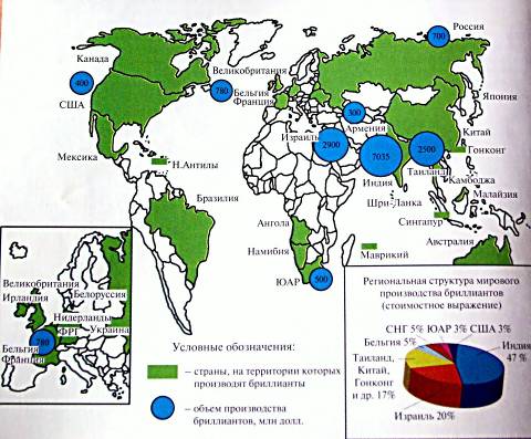 Карта мировой обработки алмазов