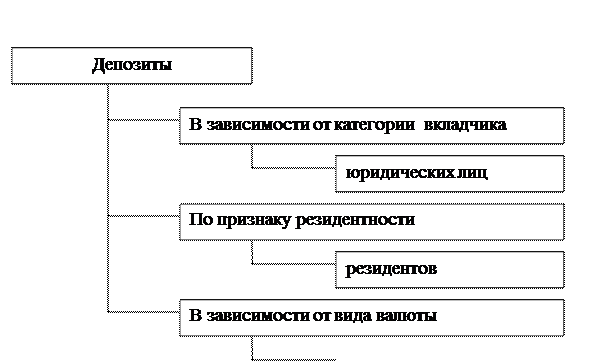 - изучение нормативной базы, необходимой для осуществления депозитных операций, сущности и классификации депозитов, основ правового регулирования вкладных операций с юридическими лицами, удельного веса депозитов в структуре обязательств банка, в формировании ресурсов банка;