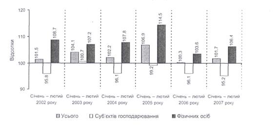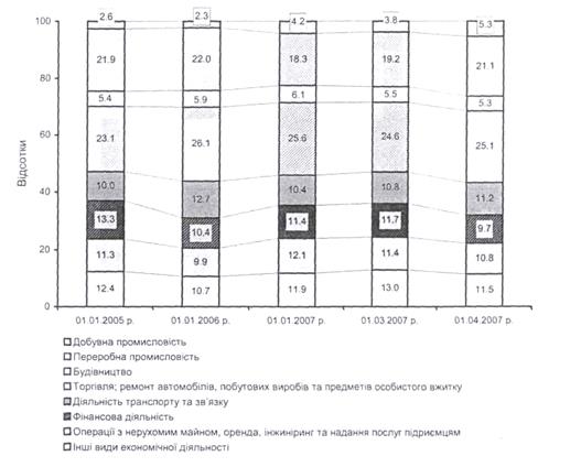 В структуре депозитных средств преобладают депозиты в национальной валюте. Их объем на 01.03.2007 составил 113,7 млрд. грн или 60,7 % от общего объема депозитных обязательств. В структуре депозитных обязательств по категориям вкладчиков наибольшей была часть вкладов физических лиц – 60,5 % против 39, 5 % вкладов юридических лиц. Депозитные вклады субъектов хозяйствования традиционно преобладали только в структуре текущих обязательств – 61,1% (35,5 млрд. грн).