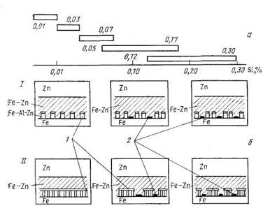 слоев железоцинкового сплава. В таких покрытиях отсутвует верхний слой цинка (n-фаза).