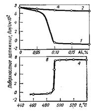 С увеличением содержания алюминия в расплаве цинка в пределах 0—0,2 % А1 (без добавки свинца) смачиваемость поверхности полосы цинком значительно уменьшается (рис. 11, кривая 1).