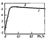 Когда в расплаве цинка поддерживается постоянное содержание алюминия (0,15%), то оптимальный уровень смачиваемости достигается при 0,05 % Рb. Дальнейшее увеличение содержания свинца практически не влияет на смачиваемость. Наконец, при отсутствии .В расплаве