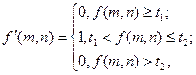 Данная операция преобразует полутоновое изображение в бинарное. Любая точка изображения, для которой выполняется условие f (m, n)