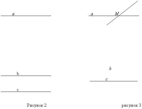 - Тогда через точку О, не принадлежащую прямой b, проходит более одной прямой (а и с), параллельных прямой b.