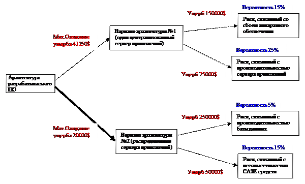 Идея метода заключается в постройке дерева возможных решений и рисков, соответствующих решениям. Пример такого дерева: