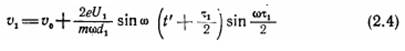 Скорость любого электрона после прохождения зазора между сетками резонатора может быть найдена в результате решения уравнения движения