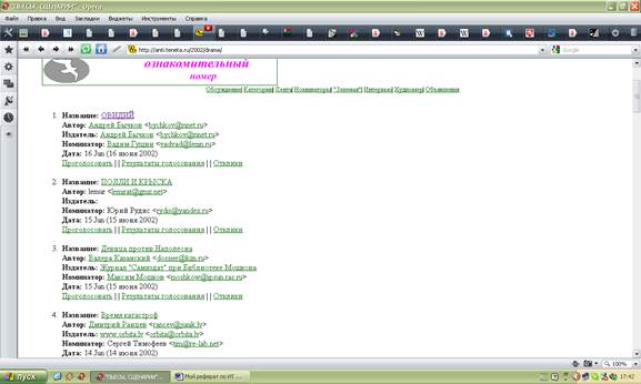 Рис. 5 -Сайт «Тенета.ru». Раздел «Пьесы, сценарии». 38