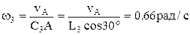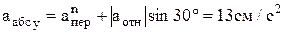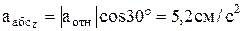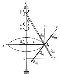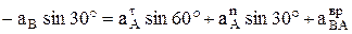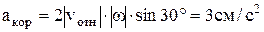 3. Кориолисово ускорение. Так как угол между вектором и осью вращения (вектором ) равен 30°, то численно в момент времени t1