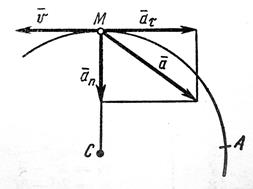 Знаки показывают, что вектор направлен в сторону положительного отсчета расстояния s, а вектор — в противоположную сторону; вектор направлен к центру С окружности. Изображаем все эти векторы на рис. К4а.