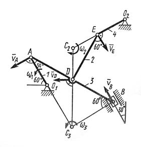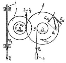 Рассмотрим движение точки В как сложное, считая ее движение по прямой AD относительным, а вращение пластины — переносным. Тогда абсолютная скорость и абсолютное ускорение найдутся по формулам: