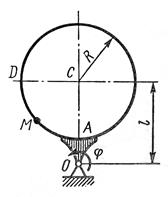 . Точка движется по дуге окружности радиуса R = 2 м по закону , заданному в табл. К1 в столбце 5 (s — в метрах, t — в секундах), где — расстояние точки от некоторого начала А, измеренное вдоль дуги окружности.