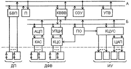 Центральным элементом системы является управляющая ЭВМ, которая по заданному алгоритму осуществляет обработку информации от измерительных устройств и выполняет функции устройства управления (цифрового регулятора).