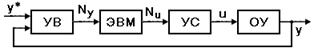 цифровой системы управления приведена на рис. 7.1.1. Она содержит управляющую ЭВМ, объект управления ОУ, устройство ввода информации УВ и устройство, предназначенное для сопряжения ЭВМ с объектом, получившие название устройства сопряжения УС. Управляемый процесс (объект), как правило, имеет аналоговую природу, и связанные с ним сигналы у(t) и u(t) являются аналоговыми. Управляющая ЭВМ (а равно и любое другое цифровое устройство) имеет дело только с цифровой информацией, и сигналы на ее входах Ny