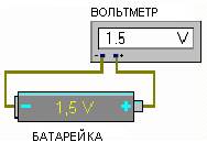 Контакты у батарейки обозначены знаками плюс (+) и минус (-). Если к этим контактам подключить измерительный прибор, который называется вольтметр, то вольтметр покажет разность потенциалов между контактами батарейки. Разность потенциалов называется напряжением и измеряется в "вольтах". В документации на электроприборы напряжение обозначается буквами В или V, например 1,5В или 1,5V.