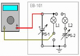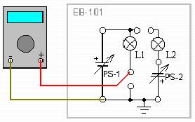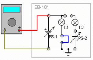 Поверните регулятор напряжения PS-1, до упора, по часовой стрелке. Включите учебный модуль и снимите показания мультиметра. Измеренный ток должен совпадать с расчетным.