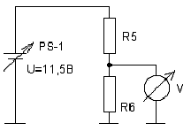 Найдем ток через цепочку R5, R6. I = U / (R5+R6) = 11,5 / (1000 + 6800) = 0,00147А или, примерно, 1,5 миллиампера. Напряжение делителя измеряется относительно общего провода, в нашем случае на резисторе R6.