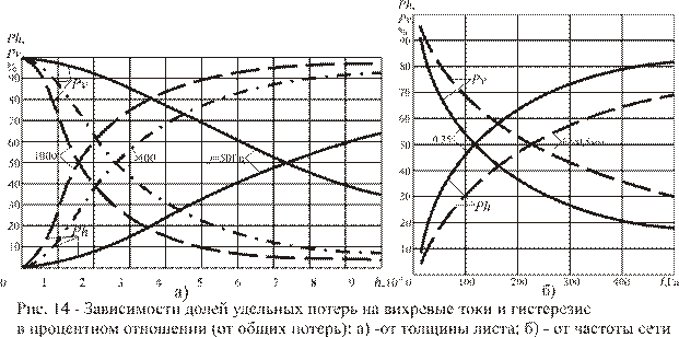 3. Выполнен анализ стационарных и нестационарных магнитных и температурных режимов электромагнитных приводов быстродействующих переключателей питания, захватов корпусосборочных устройств и электромагнитных вентилей. Получены зависимости расчетных характеристик от конструктивных особенностей аппарата, например, таких как толщина пластин шихтованных магнитопроводов, толщина и материал внешней изоляции обмотки электромагнитного вентиля, число витков и сопротивление обмотки быстродействующих приводов, частоты и фазы питающего напряжения.