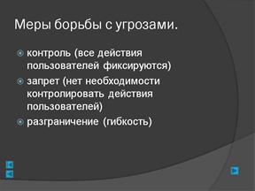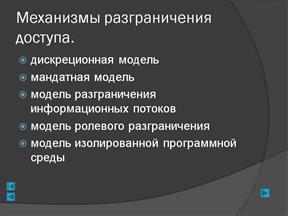 Слайд 9– Меры борьбы с угрозами Слайд 10 – Механизмы разграничения доступа