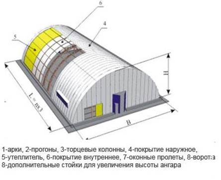 Ангары арочные утепленного типа предназначены для использования в качестве складских помещений, гаражей и автостоянок, производственных помещений, здания котельных, автомоек и т.д. (См. Рис 2).