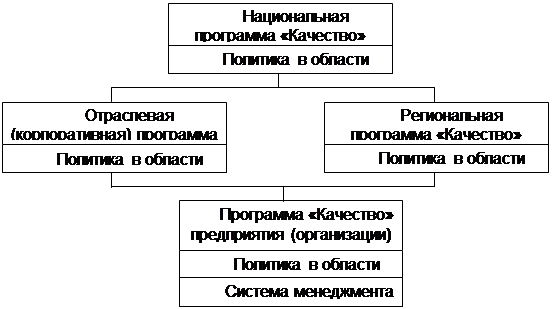 Реализация же этой политики будет осуществляться через конкретные государственные, отраслевые, региональные и предприятий программы «Качество» (рис. 2).