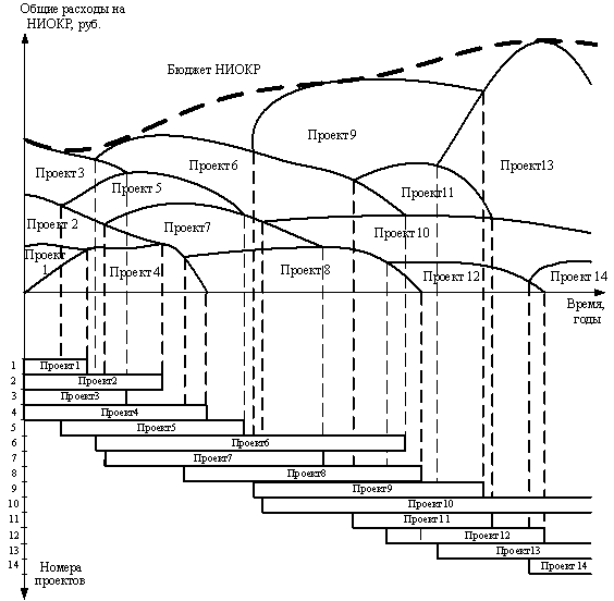 Третьей задачей инновационного менеджмента является управление портфелем проектов НИОКР. Инновационная активность компаний на практике не ограничивается разработкой и коммерческой реализацией какого-либо одного или нескольких проектов. Однажды компания, начав осуществлять инновационную деятельность, продолжает ее и впредь, вливаясь в ряды тех, кто развивает и продвигает научно-технический прогресс. Это связано с тем, что компаниями создается собственный инновационный потенциал, который требует значительных финансовых затрат, и ликвидация его после завершения отдельного проекта НИОКР за редким исключением имеет смысл. Таким образам, компании, преодолев барьеры входа в данный вид активности, вынуждены продолжать ее и далее, либо ликвидировать созданный ею инновационный потенциал. Проблема, которая возникает у компаний, решивших продолжить инновационную активность, – это проблема управления потоком проектов НИОКР. Задачей инновационного менеджмента теперь становится также балансировка и управление проектами НИОКР во времени. По существу балансировка портфеля НИОКР означает его ресурсную оптимизацию, и в первую очередь – финансовую.