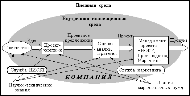 Инновационная деятельность, по сути, представляет собой [26] процедуру создания и внедрения новых товаров и услуг, разработку и внедрение новых промышленных технологий, которые будут являться основой производственной деятельности фирмы в будущем, а коммерческая реализация вновь созданных изделий (услуг) обеспечит будущие доходы и сформирует конкурентную позицию компаний.
